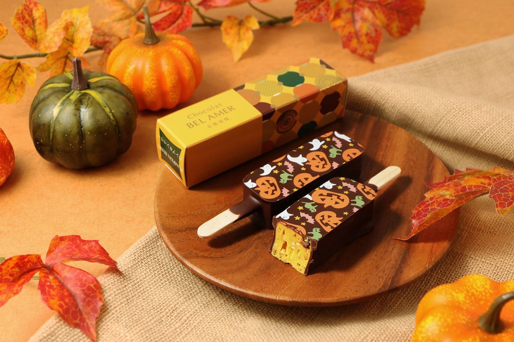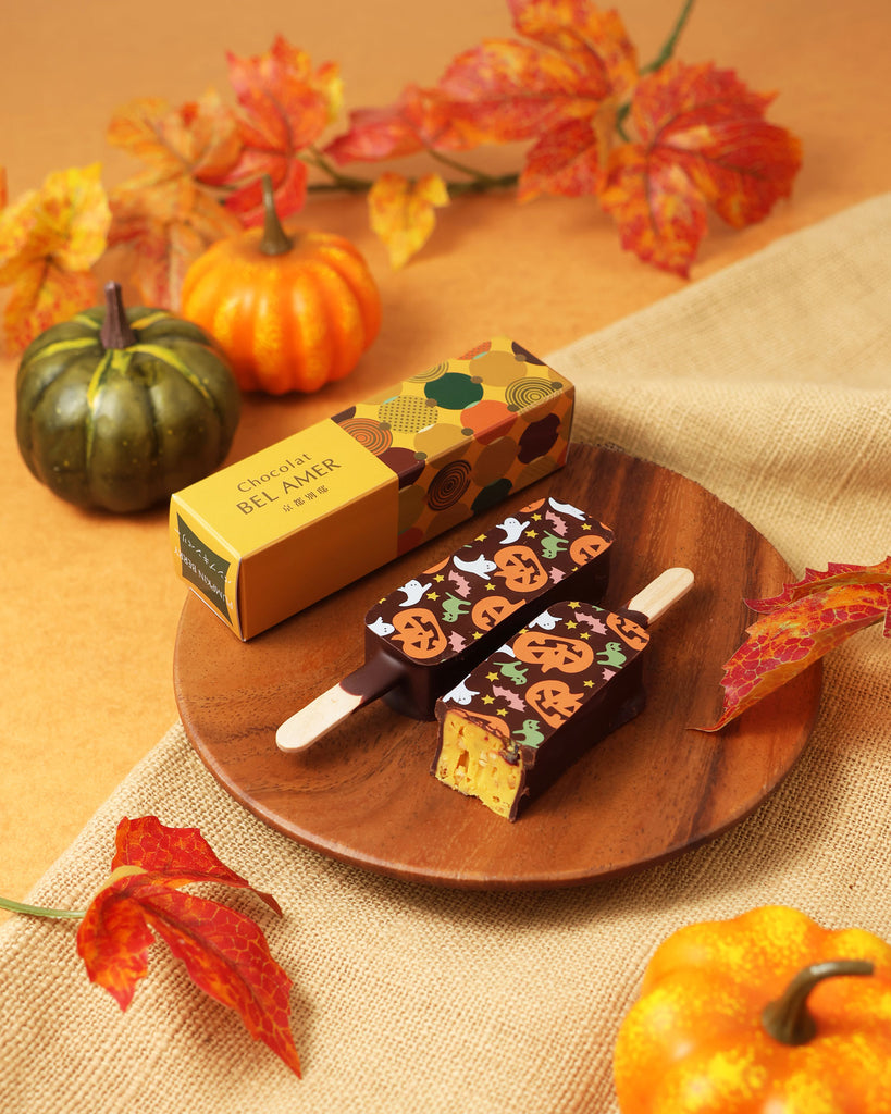 ホワイトチョコと苺チョコに、パンプキンパウダーとアーモンド、ドライクランベリーを合わせ、ビターチョコでコーティングして仕上げました。