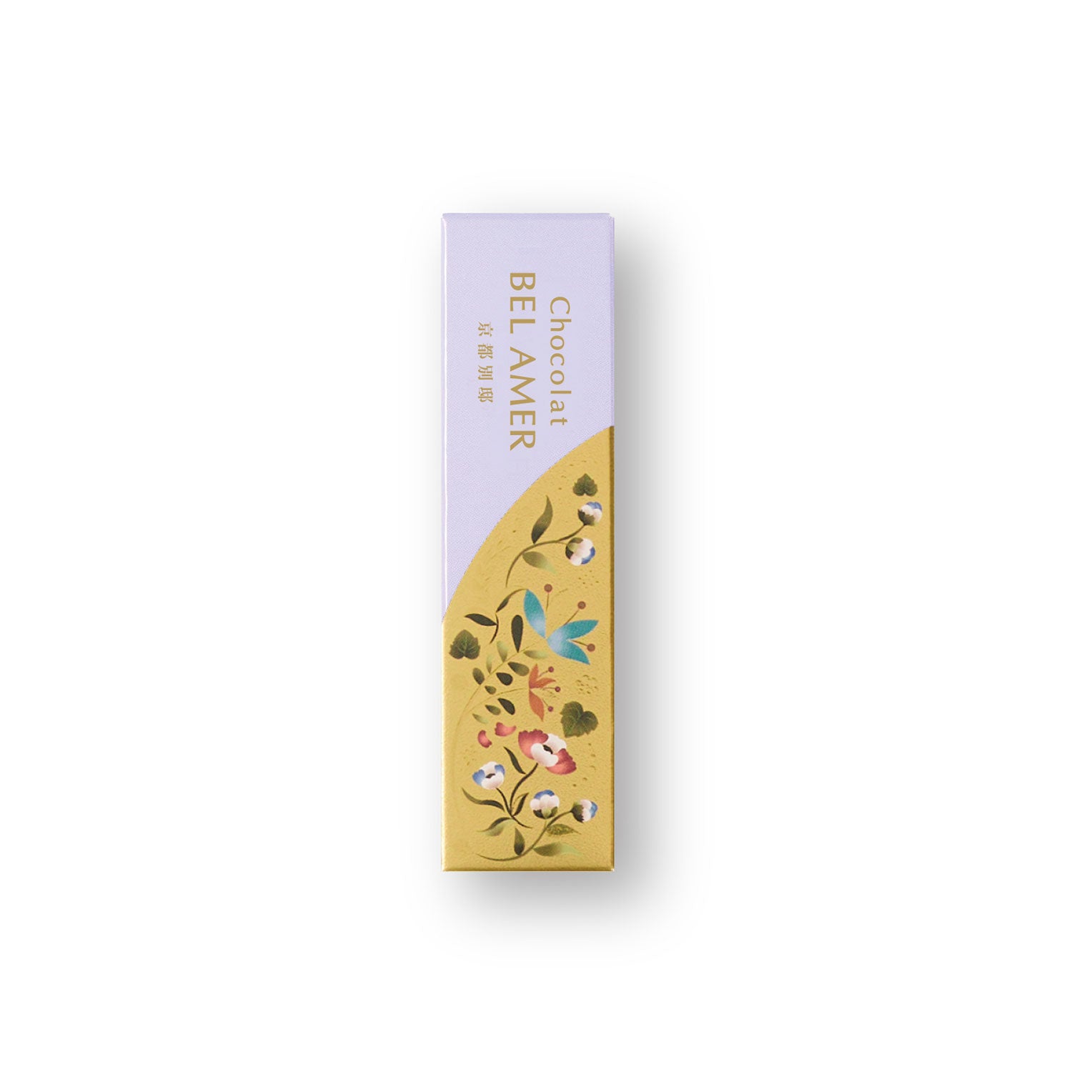 ホワイトチョコとブロンドチョコに、和紅茶パウダー、アーモンドクランチ、あられを合わせ、ミルクチョコでコーティングしました。