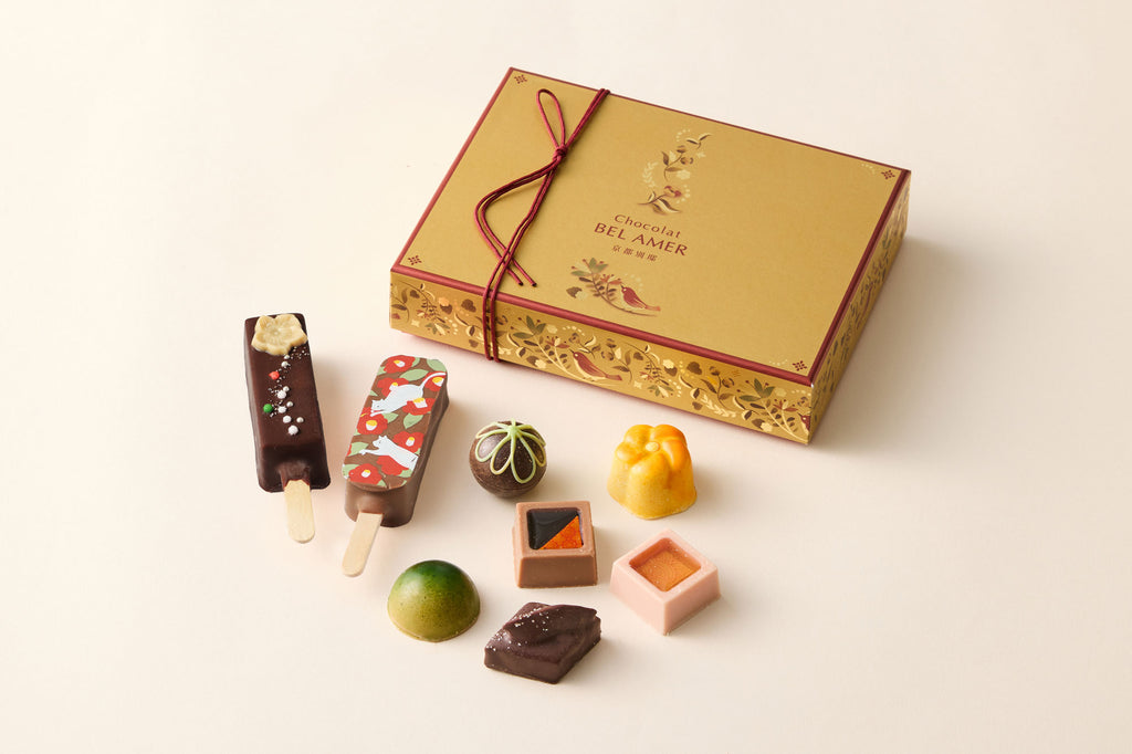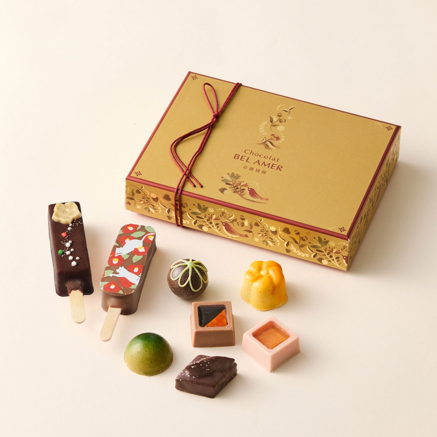 ベルアメール京都別邸のボンボンショコラとスティックショコラの詰め合わせ。