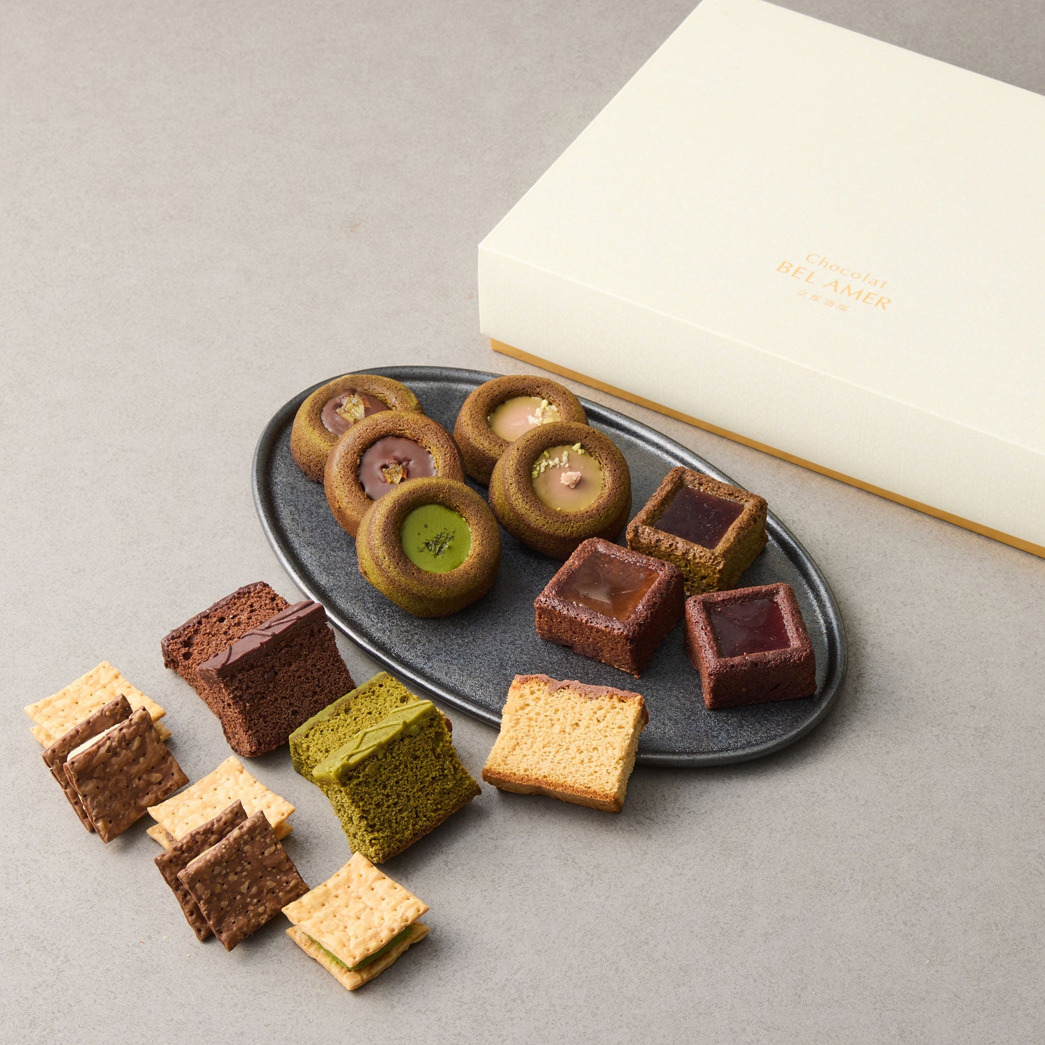 内容量:18個(ショコラパイサンド5個、お抹茶ケーク5個、ショコラカステラ5個、ジュレガトーショコラ3個)