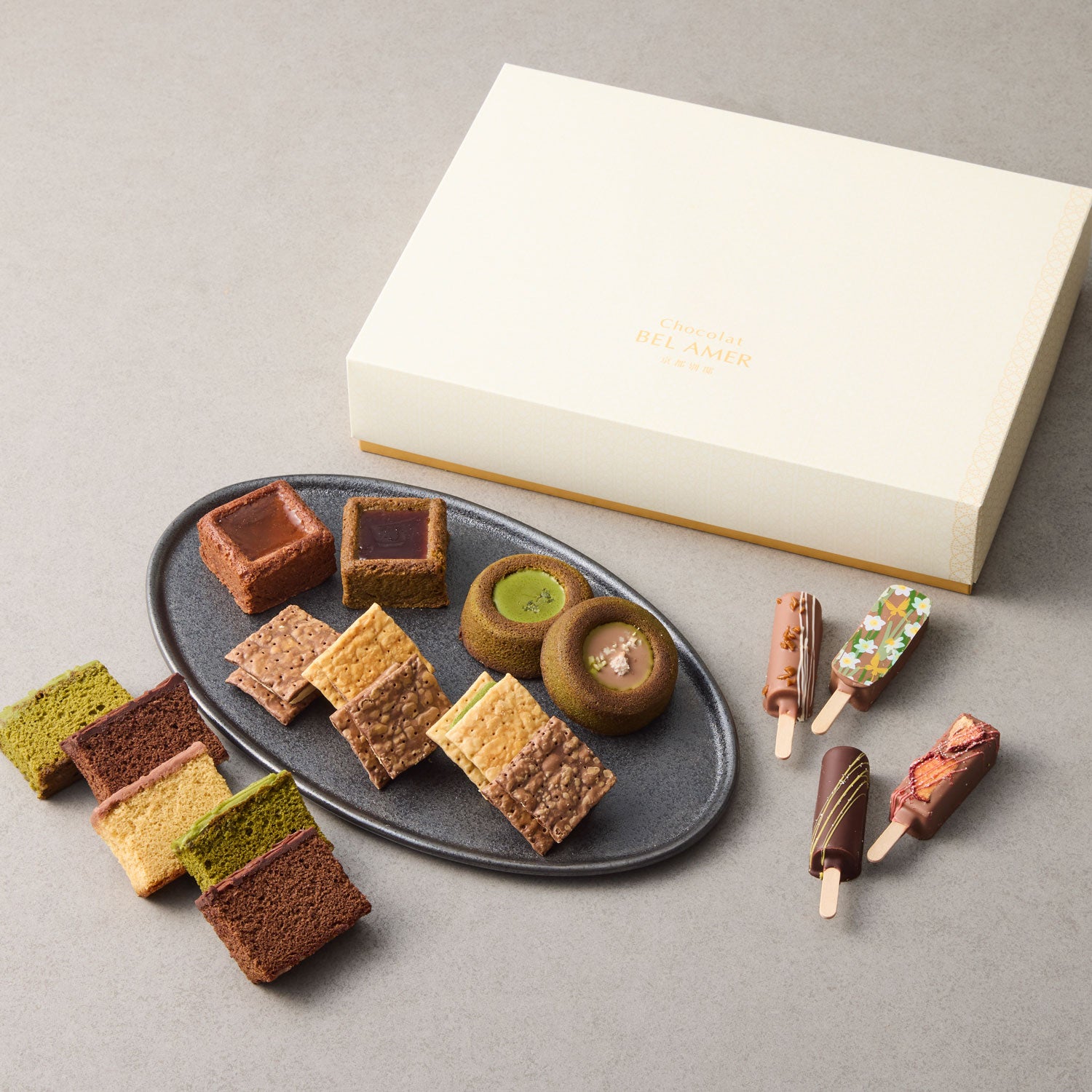 内容量:18個(スティックショコラ4本、ショコラパイサンド5個、お抹茶ケーク2個、ショコラカステラ5個、ジュレガトーショコラ2個)