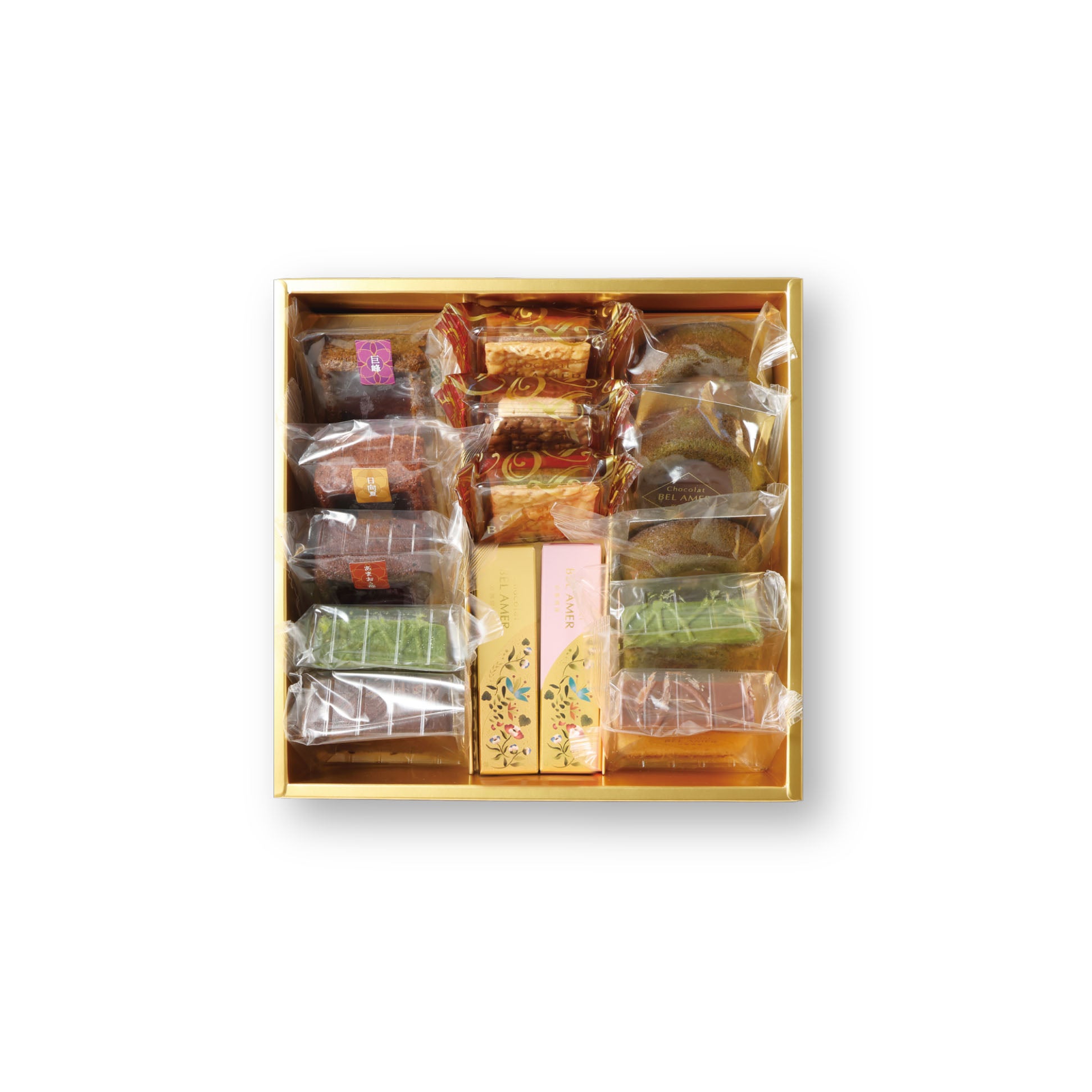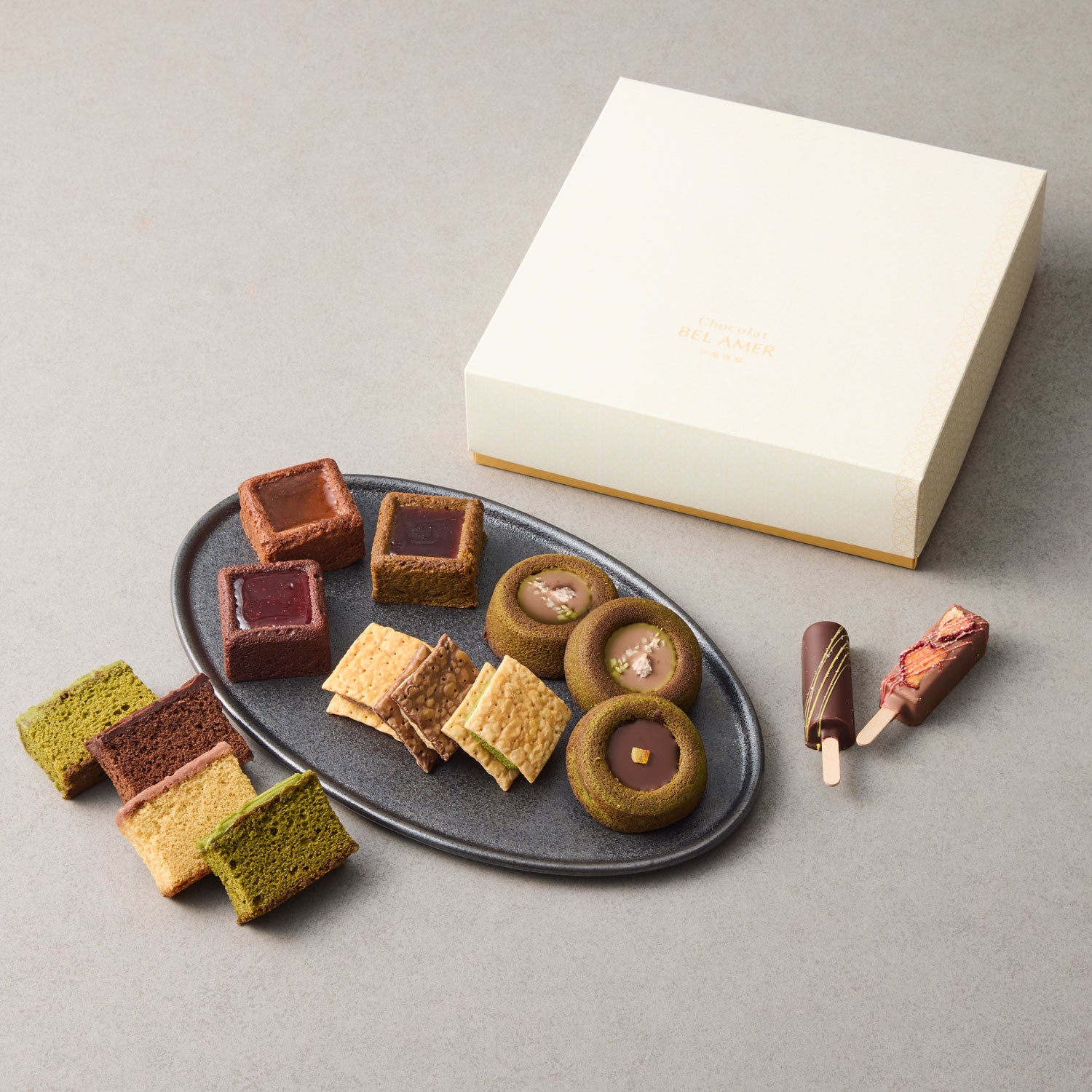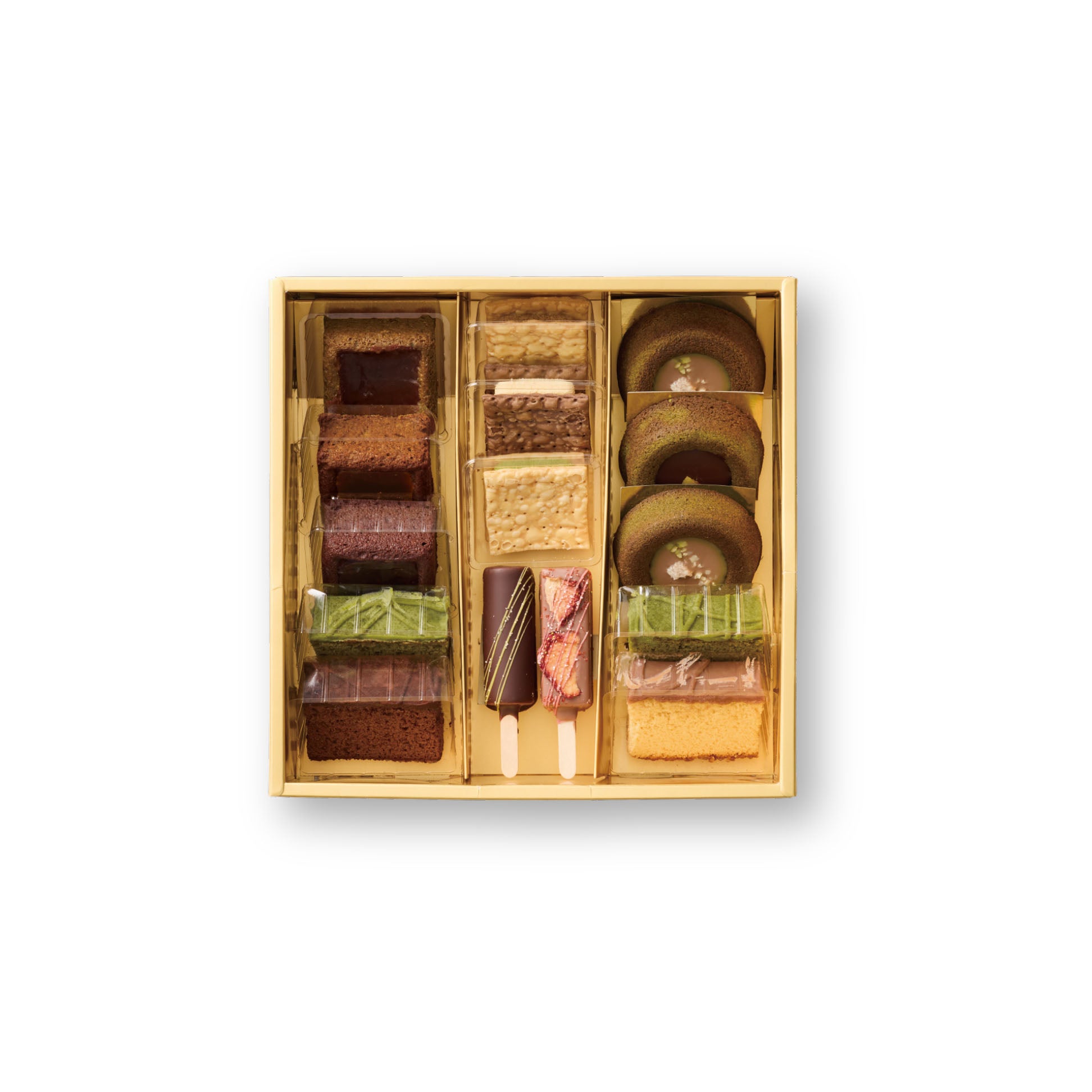 内容量:15個(スティックショコラ2本、ショコラパイサンド3個、お抹茶ケーク3個、ショコラカステラ4個、ジュレガトーショコラ3個)