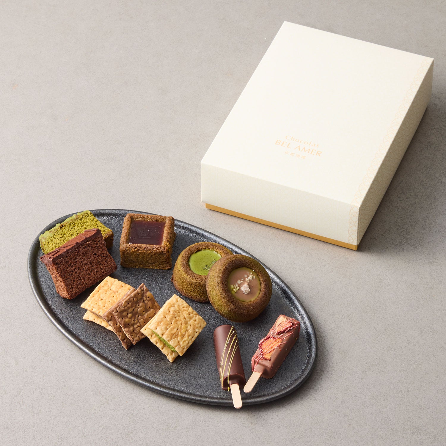 内容量:10個(スティックショコラ2本、ショコラパイサンド3個、お抹茶ケーク2個、ショコラカステラ2個、ジュレガトーショコラ1個)